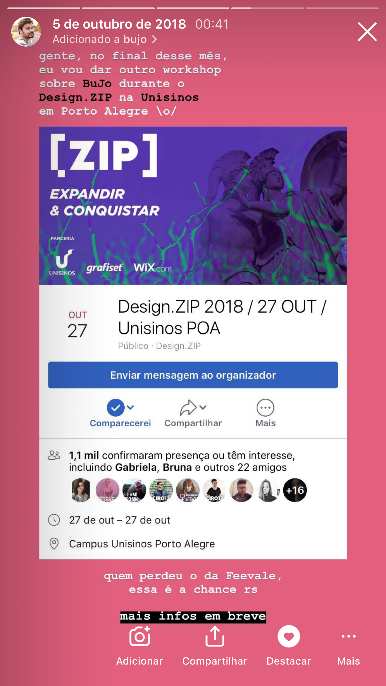 Foi pelo método do Bullet Journal que acabei desenvolvendo dois workshops, um deles foi apresentado durante a Semana Acadêmica de Design da Universidade Feevale em 2017. E o outro workshop, ministrei durante o evento de design independente e itinerante "Design.ZIP" que foi realizado na Universidade Unisinos em Porto Alegre no ano de 2018.